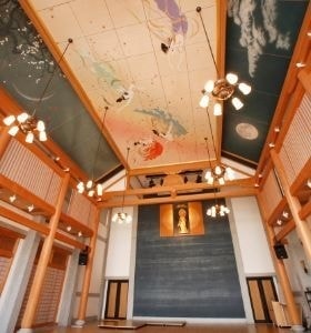 天井には飛天が舞い堂内の空間は天空へと突きぬけ、また道元禅師の御詠「春は花 夏ほととぎす 秋は月 冬雪さえてすずしかりけり」が描かれています。