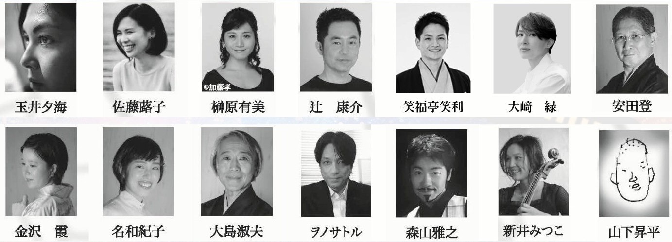 『千と千尋の神隠し』リン役の玉井夕海、俳優の佐藤蕗子、SPAC俳優の榊原有美、声楽家の辻康介などが声を担当し、能楽師の安田登、元・宝塚歌劇男役の大﨑緑、落語家の笑福亭笑利なども出演します。音楽も電子楽器(ヲノサトル)笙、太鼓と多様。